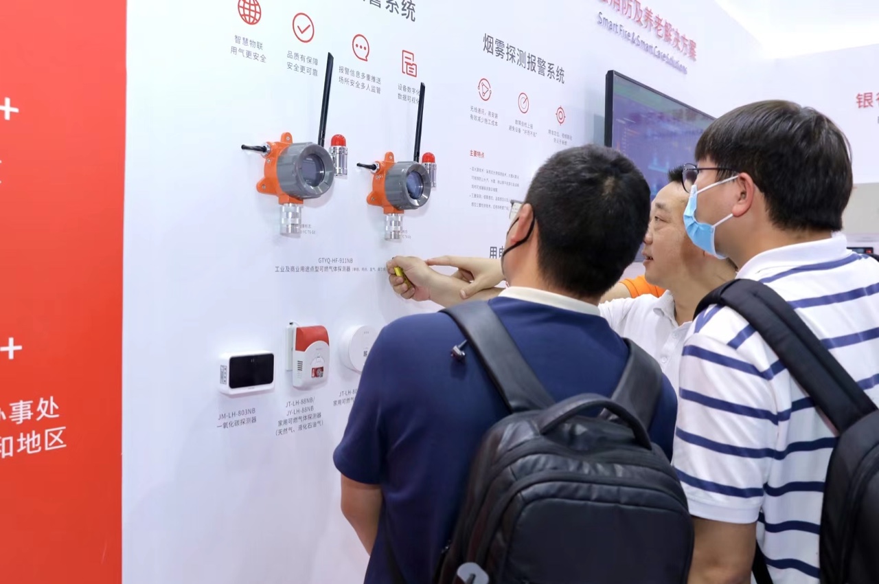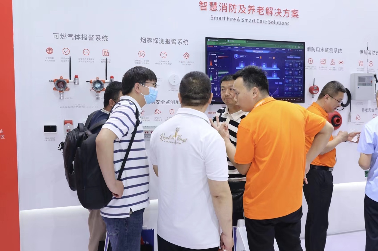 在展會(huì)左側(cè)墻面,智慧消防“1+N”解決方案成為了現(xiàn)場(chǎng)焦點(diǎn),該解決方案涵蓋煙霧探測(cè)報(bào)警、可燃?xì)怏w報(bào)警、傳統(tǒng)消防改造等六大系統(tǒng),可以實(shí)現(xiàn)水、電、煙、氣、火等在內(nèi)的實(shí)時(shí)監(jiān)測(cè),建構(gòu)“智慧消防火災(zāi)防控一張網(wǎng)”。