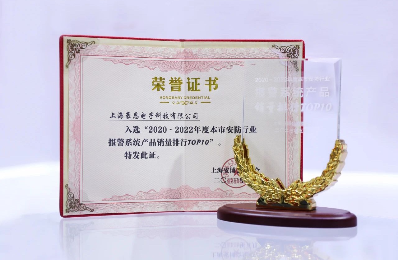 與此同時(shí),在5月17日下午,第二十屆上海安博會(huì)答謝晚宴暨優(yōu)秀安防企業(yè)頒獎(jiǎng)典禮在上海綠地萬豪大酒店舉行,豪恩一舉斬獲了“2020-2022年度本市安防行業(yè)報(bào)警系統(tǒng)產(chǎn)品銷量排行TOP10”行業(yè)大獎(jiǎng)。憑借其在安全領(lǐng)域的解決方案及創(chuàng)新產(chǎn)品,豪恩用成績(jī)和銷量證明了其品牌的凝聚力與創(chuàng)新力。