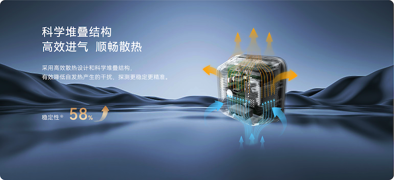 高精度檢測芯片搭載華為鴻蒙智家自適應(yīng)算法,能對每一路傳感器信號做實時補償與融合處理,保障傳感器即使處于復(fù)雜環(huán)境下也能穩(wěn)定探測,抗干擾能力提升17.9%*。