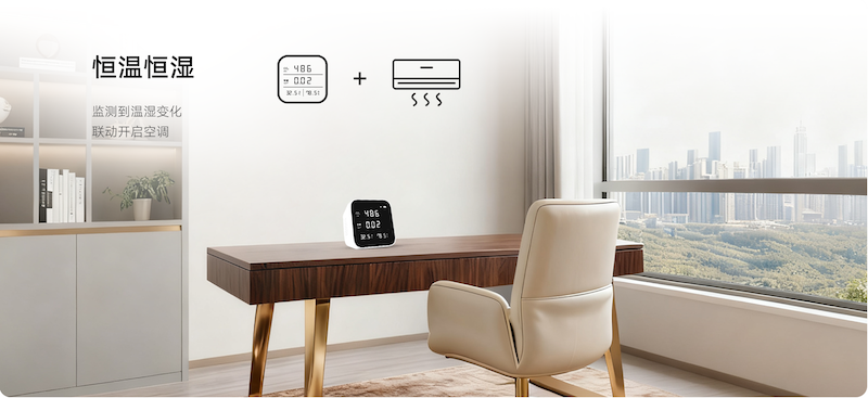 恒溫恒濕:當(dāng)豪恩空氣質(zhì)量檢測儀監(jiān)測到溫濕度異常時,自動開啟空調(diào)或加濕器,營造舒適居家環(huán)境,呵護家人健康。