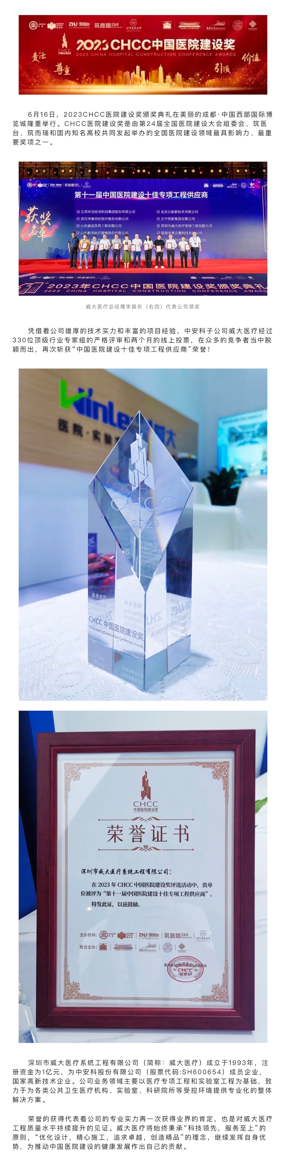 喜訊|中安科子公司威大醫(yī)療再次榮獲“中國醫(yī)院建設(shè)十佳專項工程供應(yīng)商”殊榮