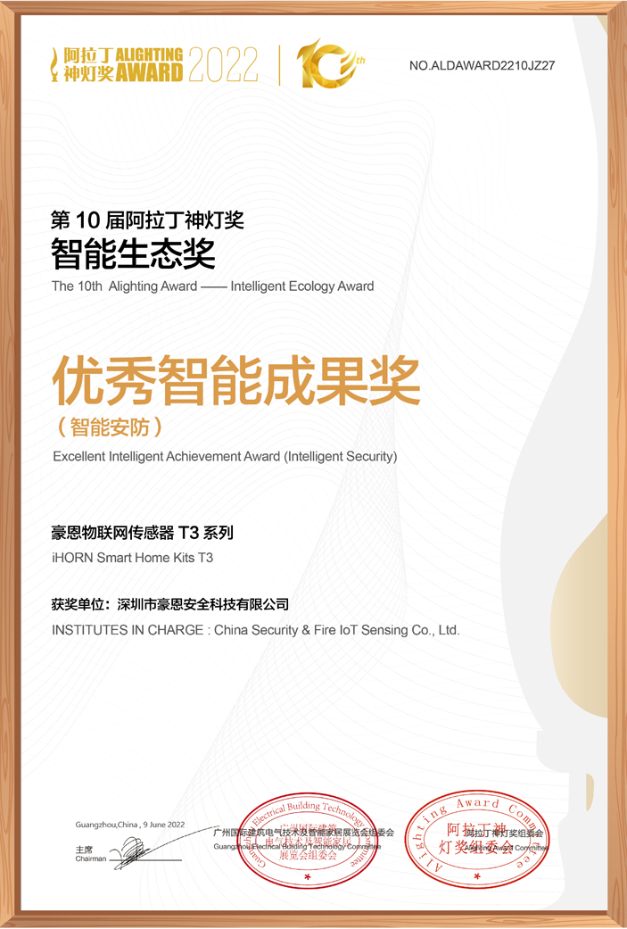 8月4日,豪恩物聯(lián)網(wǎng)傳感器T3系列榮獲“2022阿拉丁神燈獎——智能生態(tài)獎”此前,T3也曾斬獲德國紅點設(shè)計大獎是一套顏值與科技并存、品質(zhì)與性能齊驅(qū)的產(chǎn)品。