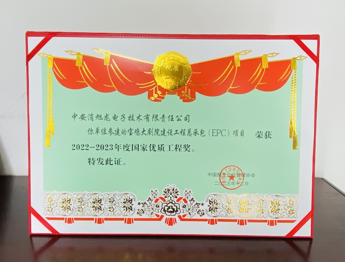 新的一年,喜報(bào)開(kāi)頭!近日,中安科子公司中安消旭龍電子技術(shù)有限責(zé)任公司參建的寶雞大劇院建設(shè)工程總承包(EPC)項(xiàng)目弱電智能化工程,榮獲2022-2023年第一批國(guó)家優(yōu)質(zhì)工程獎(jiǎng)。