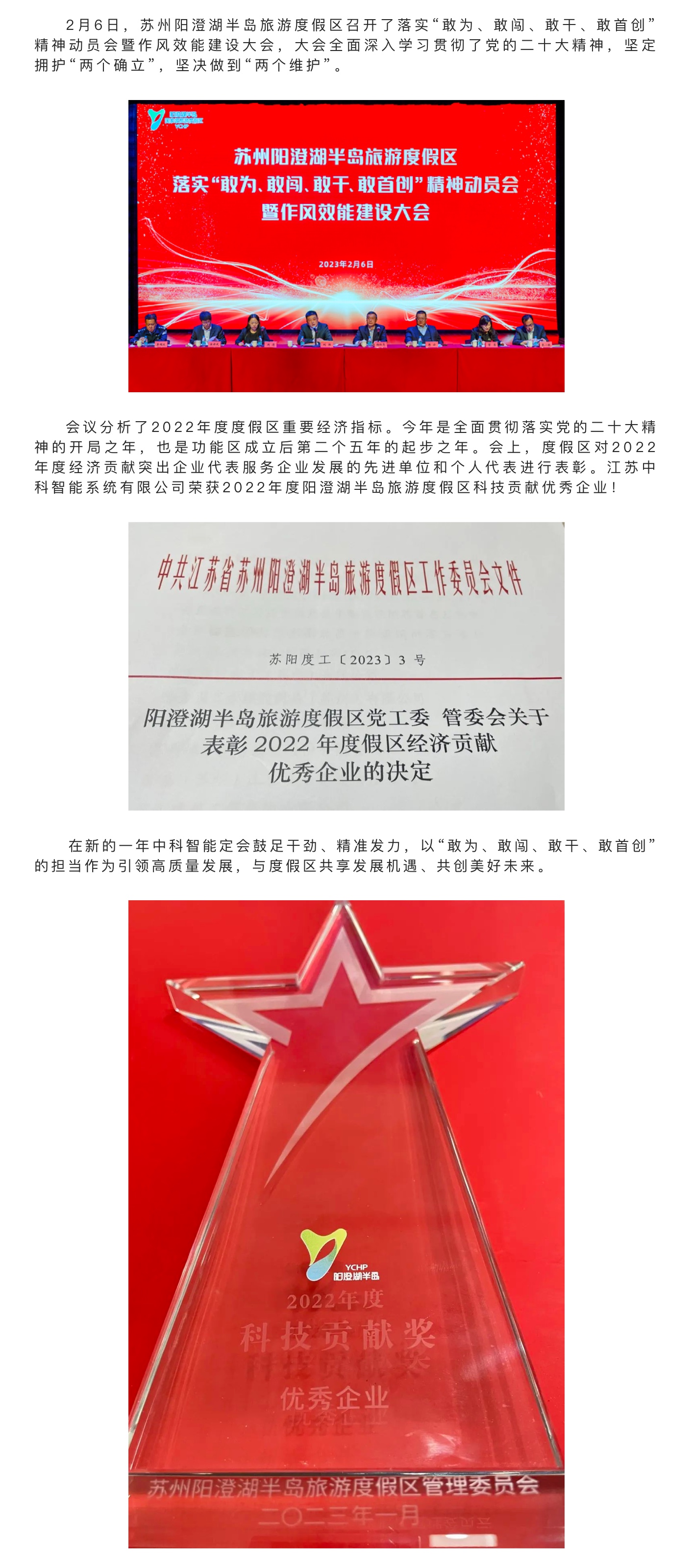 喜報(bào)!中安科子公司——江蘇中科智能榮獲2022年度陽(yáng)澄湖半島旅游度假區(qū)科技貢獻(xiàn)獎(jiǎng)