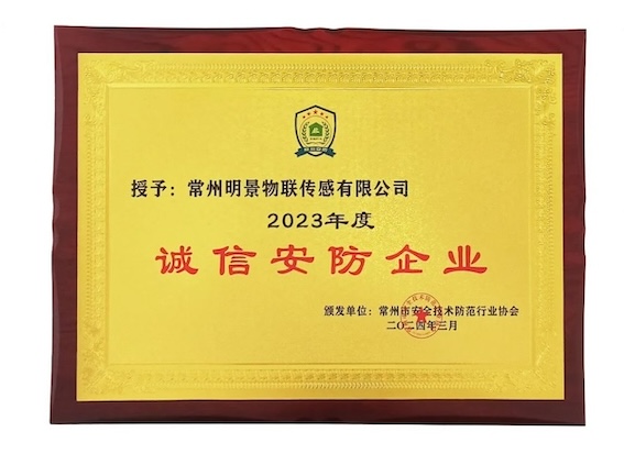 中安科子公司常州明景物聯(lián)傳感有限公司榮獲“2023年度誠信安防企業(yè)”及"2023年度常州安防行業(yè)優(yōu)秀安防產(chǎn)品”榮譽稱號。