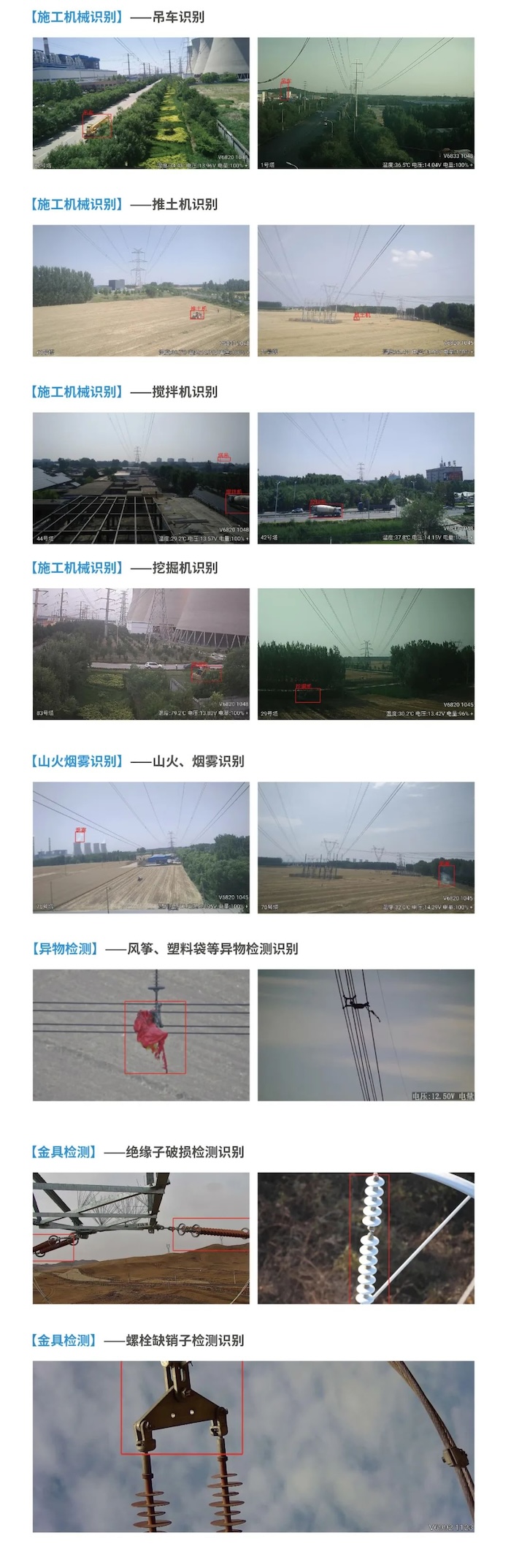 明景輸電線路AI算法可實(shí)現(xiàn)輸電在線監(jiān)測(cè)、電力作業(yè)現(xiàn)場(chǎng)安監(jiān)方面的多項(xiàng)AI分析識(shí)別功能。