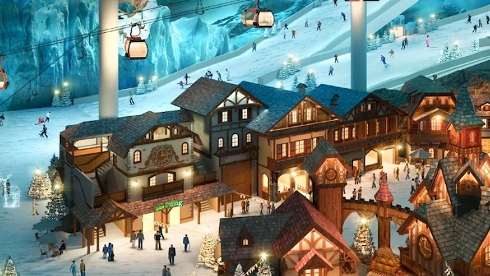該項(xiàng)目總建筑面積達(dá)35萬平方米,主要包含一座建筑面積約9萬平方米的室內(nèi)真雪滑雪場、一座全天候水上樂園、三座星級度假酒店、多功能會(huì)展中心、冰雪主題商業(yè)小鎮(zhèn)等,填補(bǔ)了上海文旅產(chǎn)業(yè)鏈冰雪文旅的空白。